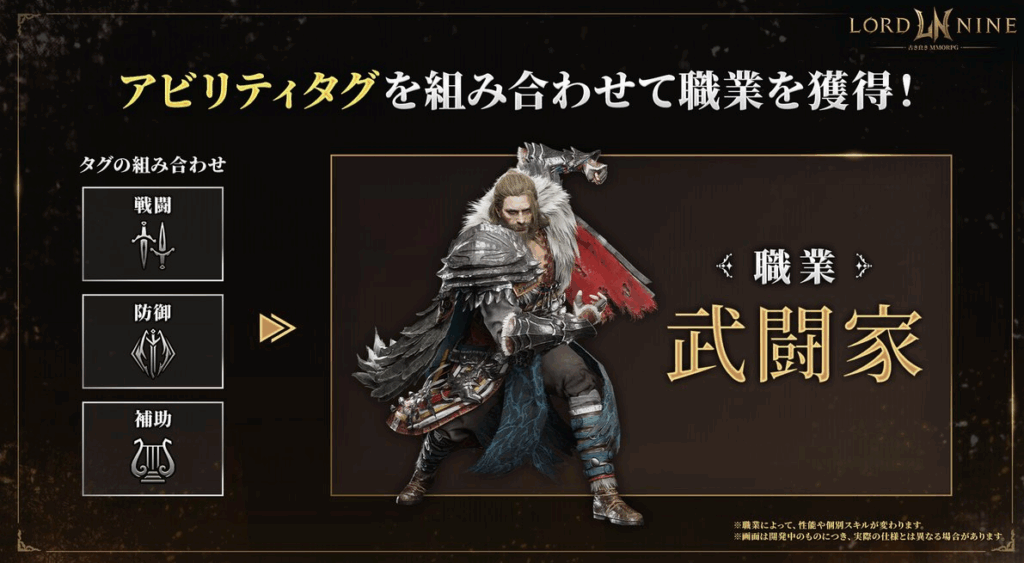 特定の3つのアビリティタグを活性化させることで、対応する職業が生成されます。職業が活性化されると、その職業固有のアクティブスキルや、大幅な能力値ボーナスを獲得できます。