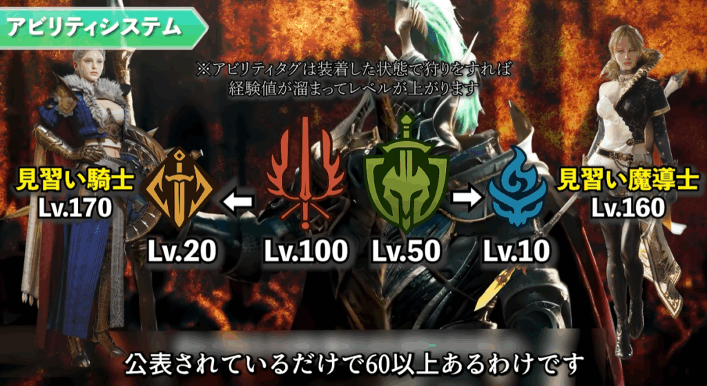 ・キャラクターレベル概念の排除:従来のMMORPGにおける「キャラクターレベル」という概念が存在しないことは、王の御言葉からも特筆すべき点です。育成の焦点は、武器ごとのレベルとアビリティタグのレベル上げに集約されることで、貴殿らがより本質的な「強さ」を追求できることを意味します。