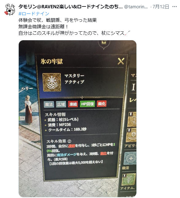 「タモリン」氏は、体験会で杖、戦闘盾、弓を試した結果、「無課金微課金は遠距離!」と、特定の武器種が持つ優位性を示唆。さらに「杖はブリンクで下がれるから死ににくくて強いかも」と、武器が持つ独自の戦術的価値を評価しています。これは、9種類の武器がプレイヤーの選択肢をいかに広げているかを示す好例でしょう。