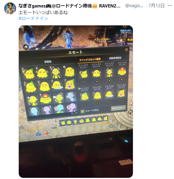 仲間とのコミュニケーションで多く使用されるエモート機能は多彩なイラストが存在。